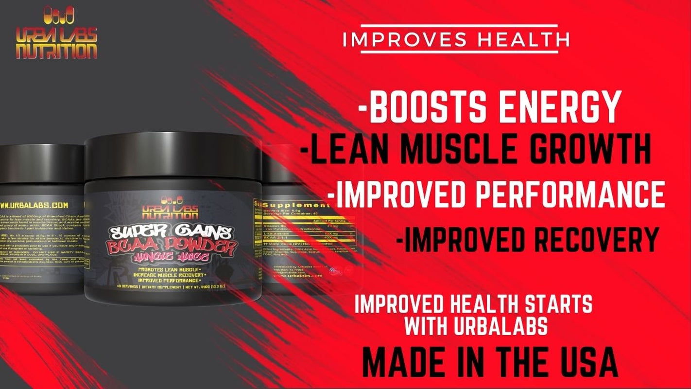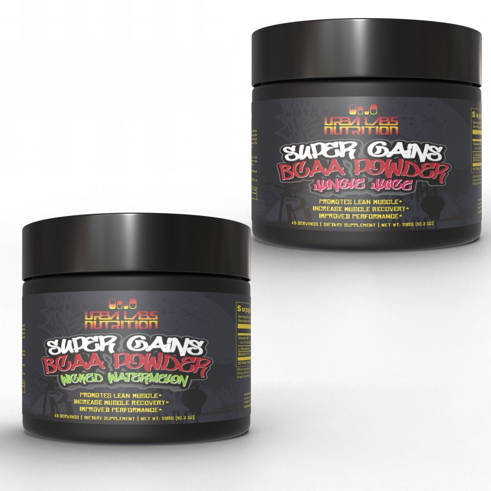 • Premium BCAA Muscle Recovery: Urbalabs Super Gains BCAA Powder in the delicious Jungle Juice or Wicked Watermelon flavor is your ultimate post-workout solution. Packed with essential amino acids, it helps kickstart muscle recovery and repair, so you can bounce back stronger after every workout.