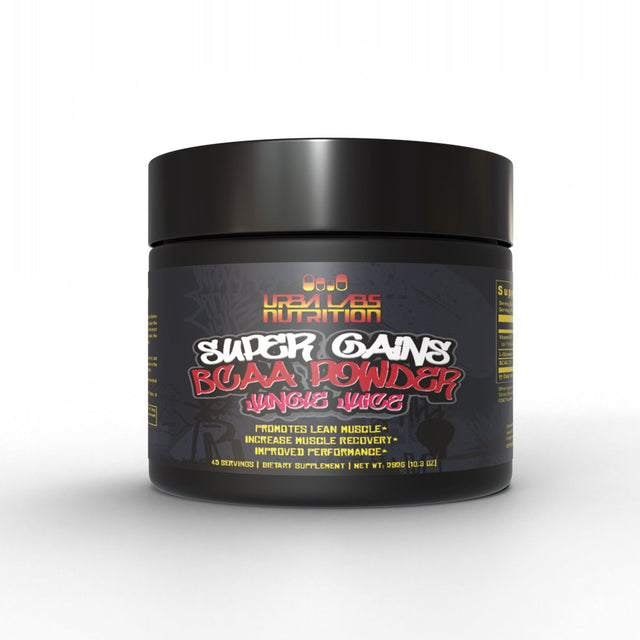 - Premium BCAA Muscle Recovery: Urbalabs Super Gains BCAA Powder in the delicious Jungle Juice or Wicked Watermelon flavor is your ultimate post-workout solution. Packed with essential amino acids, it helps kickstart muscle recovery and repair, so you can bounce back stronger after every workout.