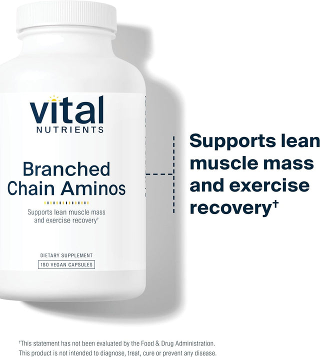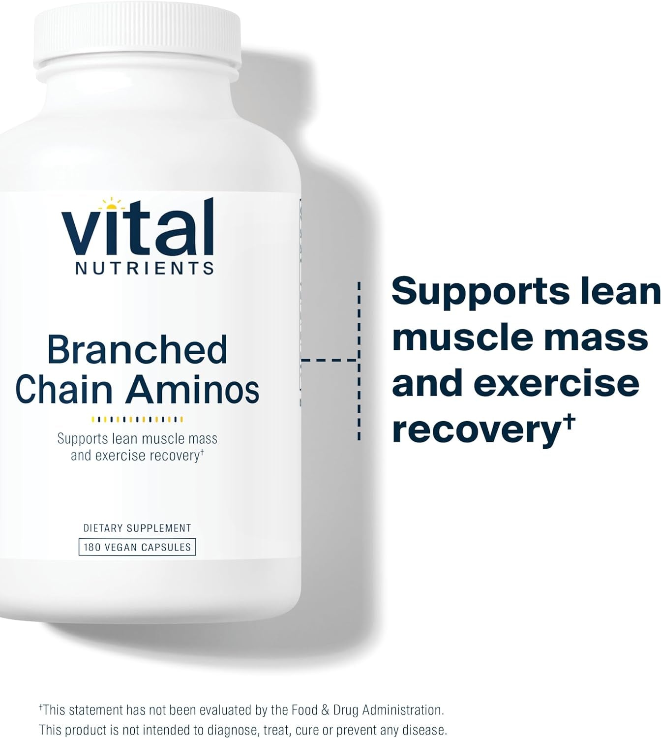 Vital Nutrients - Branched Chain Aminos - Blend of L-Leucine, L-Isoleucine, L-Valine, and L-Lysine Hcl Amino Acids - 180 Vegetarian Capsules per Bottle