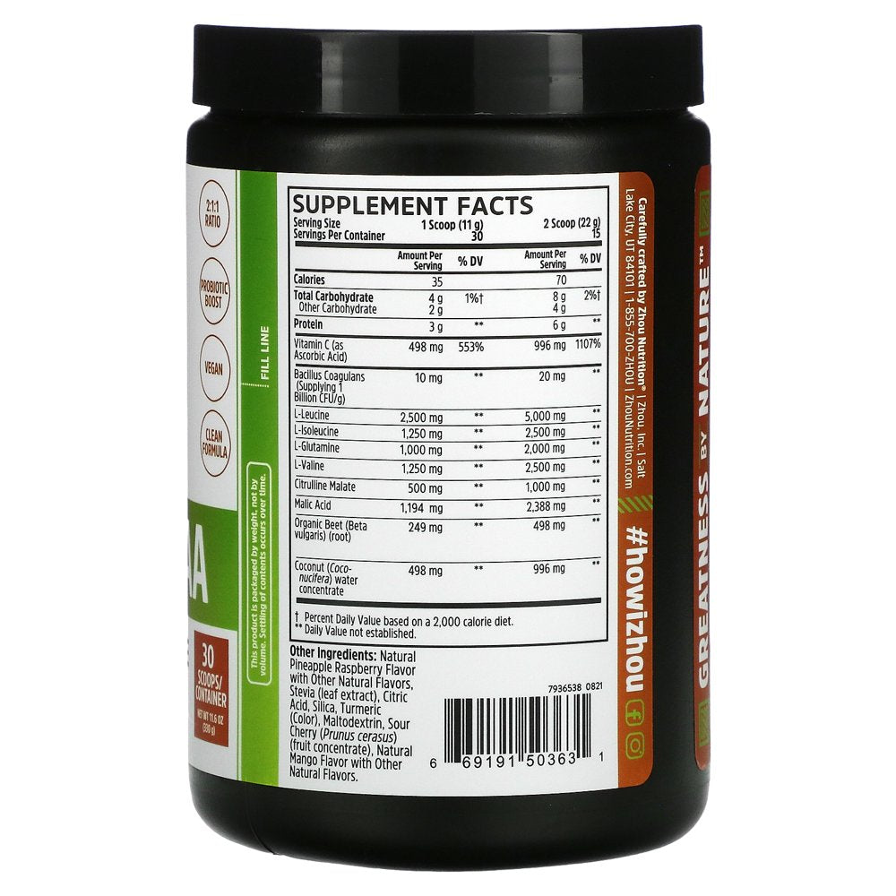Zhou Nutrition, Muscle BCAA, Maximum Muscle Formula, Tropical Punch, 11.6 Oz (330 G)