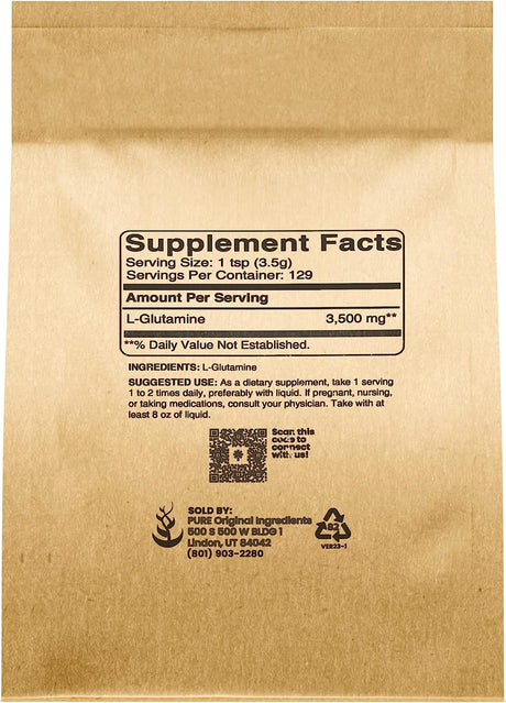 Pure Original Ingredients L-Glutamine (1Lb) Alpha-Amino Acid Supplement Powder, Lab-Verified