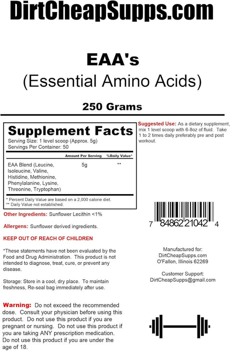 Eaa'S-Essential Amino Acids -Eaa'S- 250G Vegan Sourced (Unflavored) 50 Servings
