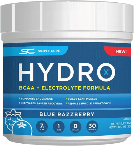 Hydro X BCAA Powder + Electrolytes for Fuel, Stamina, and Hydration, 30 Servings (Blue Razzberry)