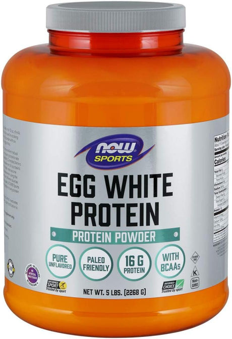 NOW Sports Nutrition, Egg White Protein, 16 G with Bcaas, Unflavored Powder, 5-Pound