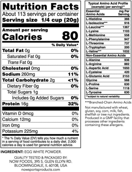 NOW Sports Nutrition, Egg White Protein, 16 G with Bcaas, Unflavored Powder, 1.2-Pound