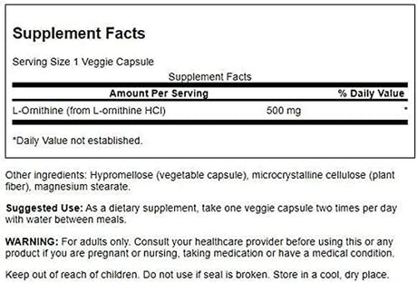 Swanson L-Ornithine Amino Acid 500 Milligrams 60 Veg Capsules (2 Pack)