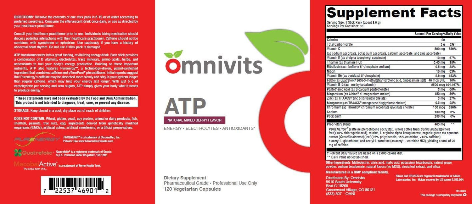 ATP Natural Mixed Berry | Energy Electrolytes Antioxidants Drink | with Purenergy Blend, Quatrefolic, Methylcobalamin, Vitamins, Trace Minerals 30 Stick Pack (8.6G)