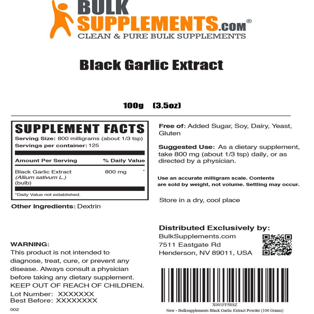 Product Name BulkSupplements.com Black Garlic Extract - Antioxidants Supplement - Aged Garlic Extract - Blood Circulation Supplements (100 Grams - 3.5 oz)
