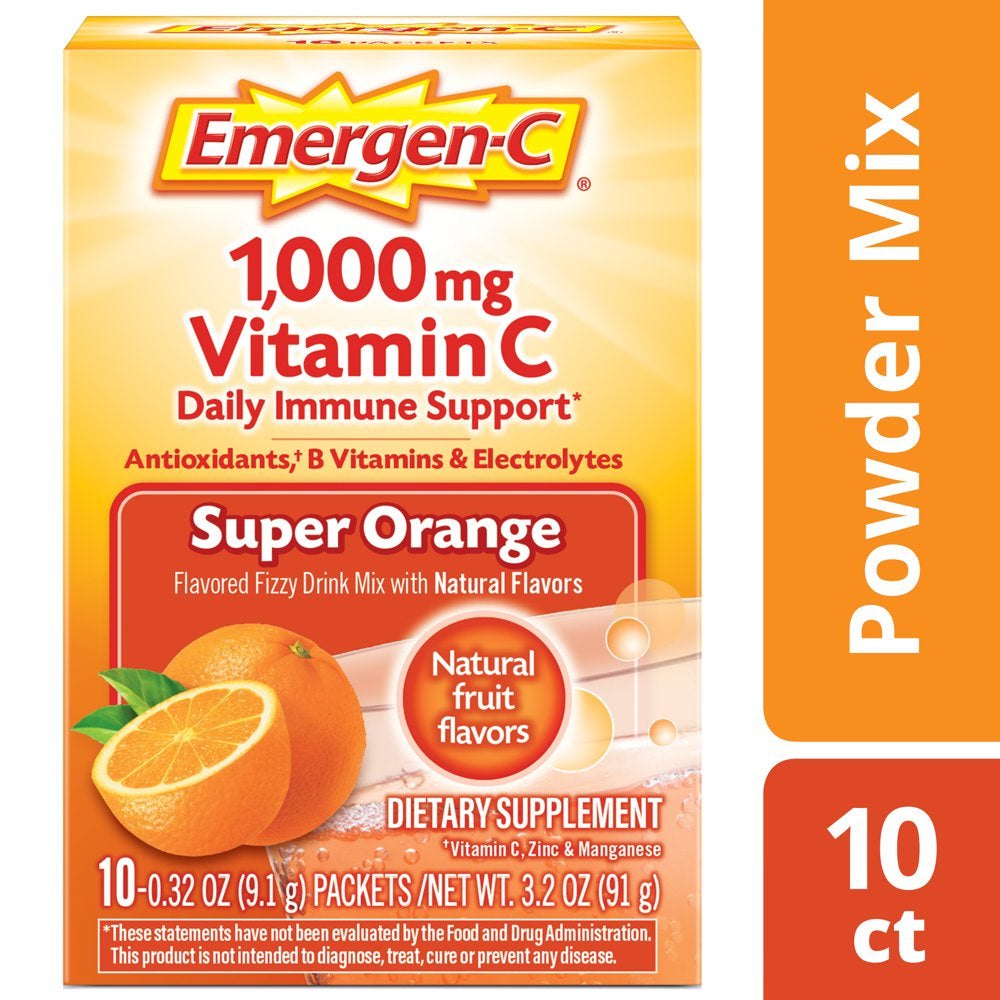 Emergen-C 1000Mg Vitamin C Powder, with Antioxidants, B Vitamins and Electrolytes for Immune Support, Caffeine Free Vitamin C Supplement Fizzy Drink Mix, Super Orange Flavor - 10 Count - 1 is backordered and will ship as soon as it is back in stock.