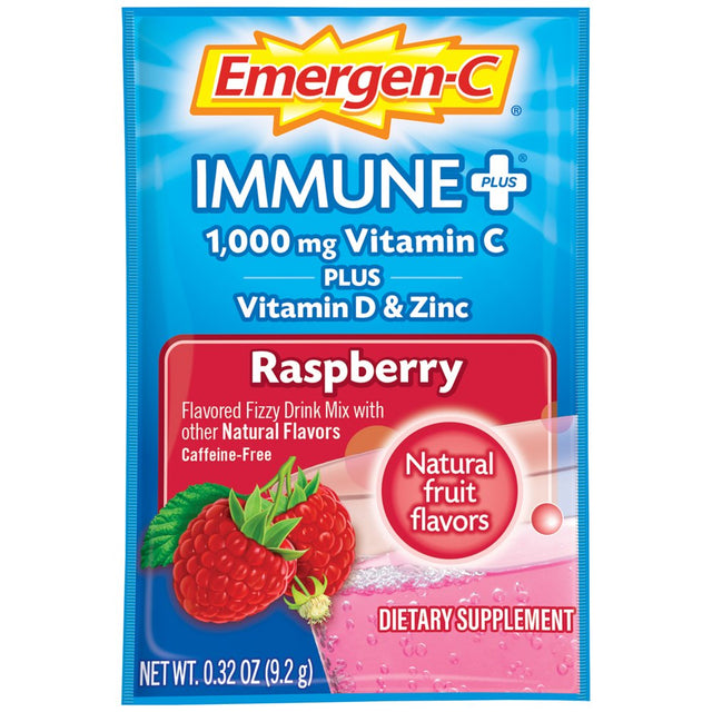 Emergen-C Immune+ 1000Mg Vitamin C Powder, with Vitamin D, Zinc, Antioxidants and Electrolytes, Immune Support Dietary Supplement, Super Orange and Raspberry Flavors - 70 Count