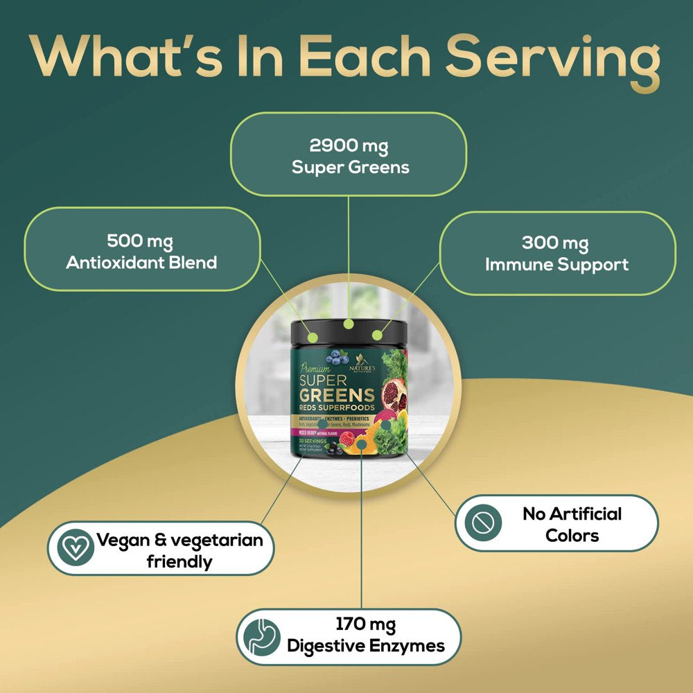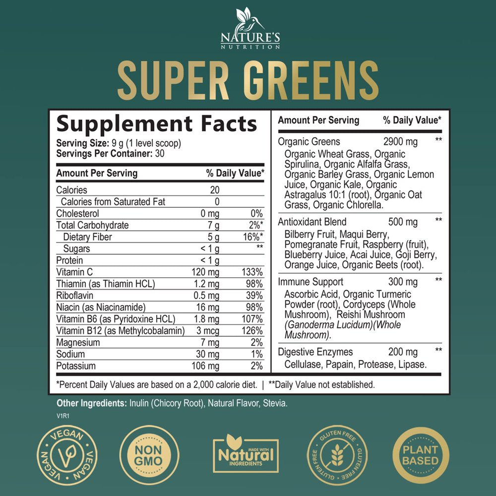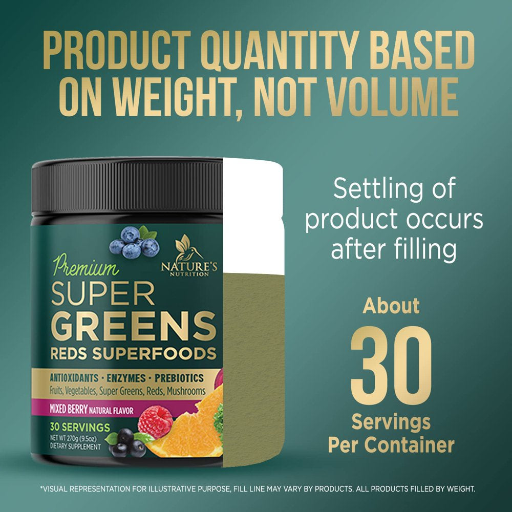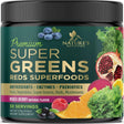 • Green Superfood Premium Super Greens Powder: Natures Nutrition berry flavored flavor daily juice drink blend smoothie shake mix powdered supports energy digestion digest gut health benefits best blends bloating spirulina chlorella plus reds superfoods supergreen supergreens power supplements vegetable veggie vitamins 30 servings