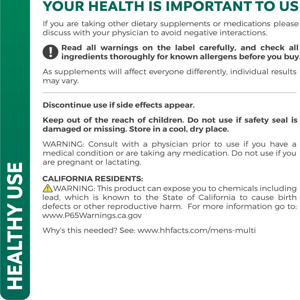 • ULTIMATE MEN'S HEALTH: With a full cupboard of vitamins and minerals backed up by a bevy of helpful herbs that you likely do not get enough of in your diet, the Men’s Multivitamin from Healths Harmony is your daily dose of superfoods to support your overall health and increase your energy level throughout the day. Great for all Men, including Seniors!