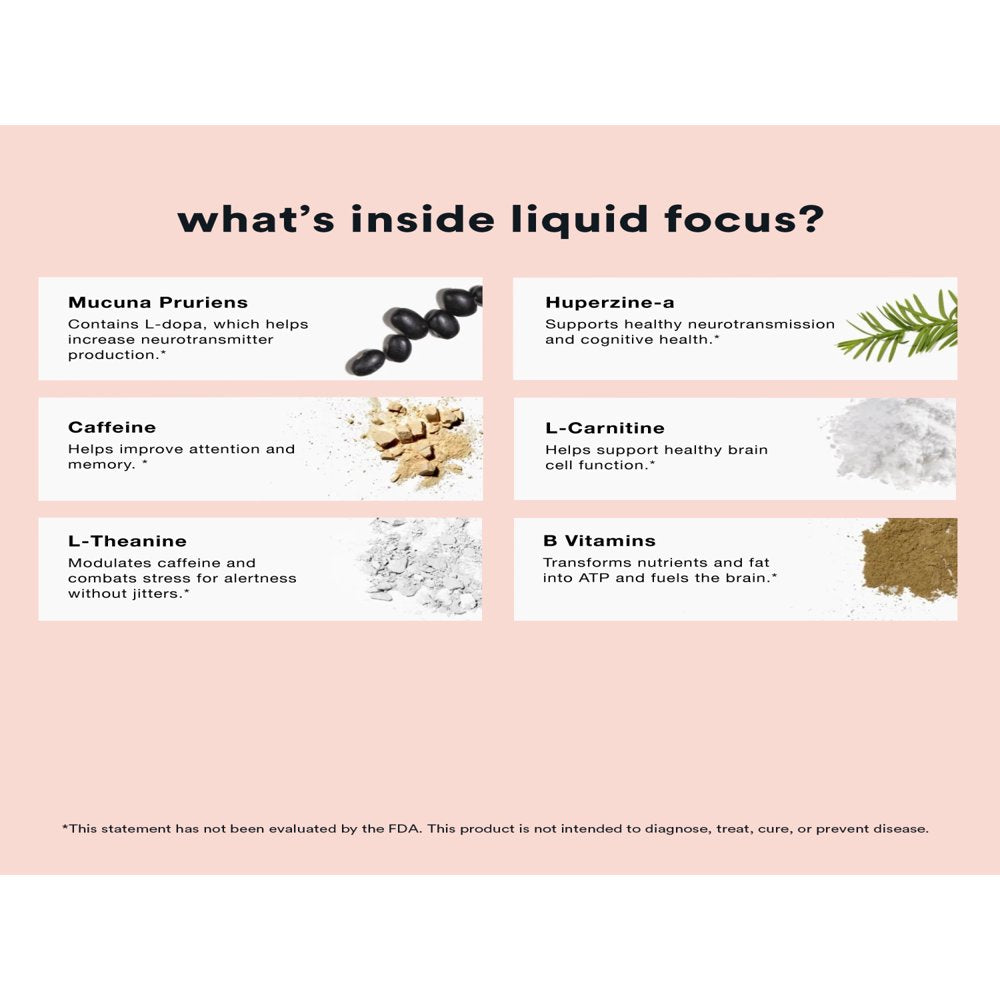 - Energize Your Mind: Grab a bottle of Liquid Focus for that afternoon workday slump, when you’re studying for exams, gaming, or whenever you need to get in the zone and perform at your peak.