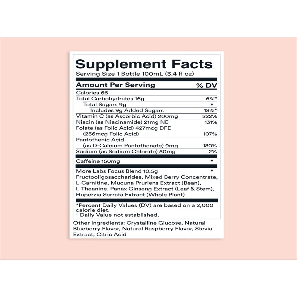 More Labs Liquid Focus, Nootropic Smart Drink with Powerful Antioxidants and Adaptogenic Herbs for Energy and Concentration, 150Mg Caffeine