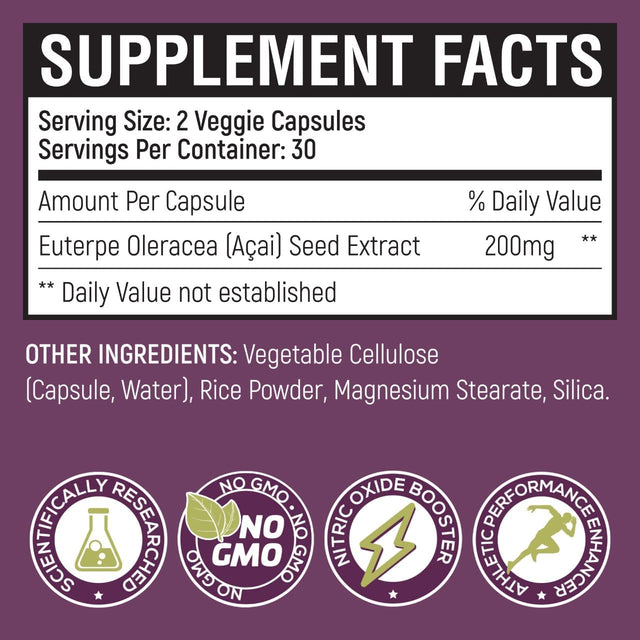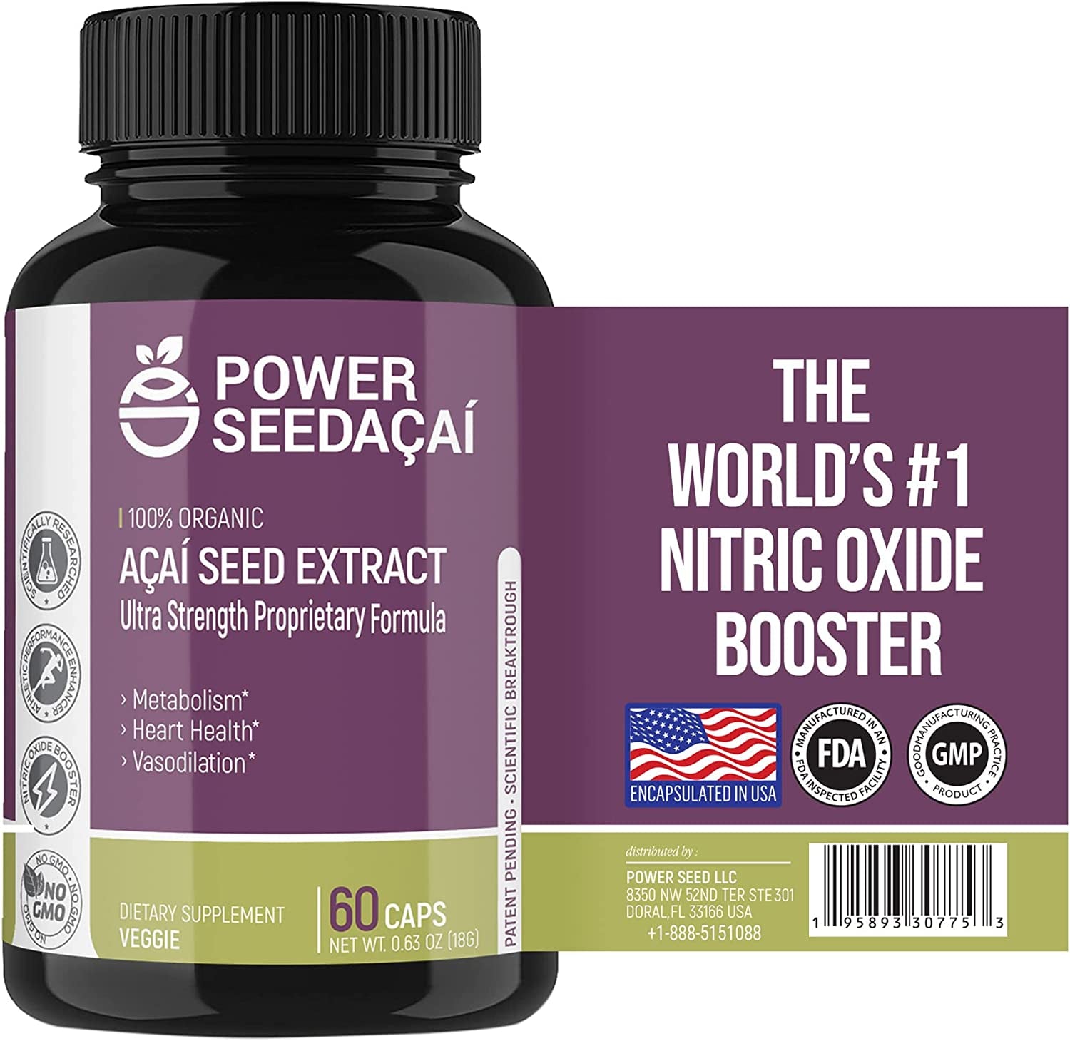 New Patented Nitric Oxide Supplement -Increase Blood Flow & Circulation- Organic Acai Seed Extract -100% Vasodilation, Support Circulation- 50 X Antioxidants- 60 Capsules