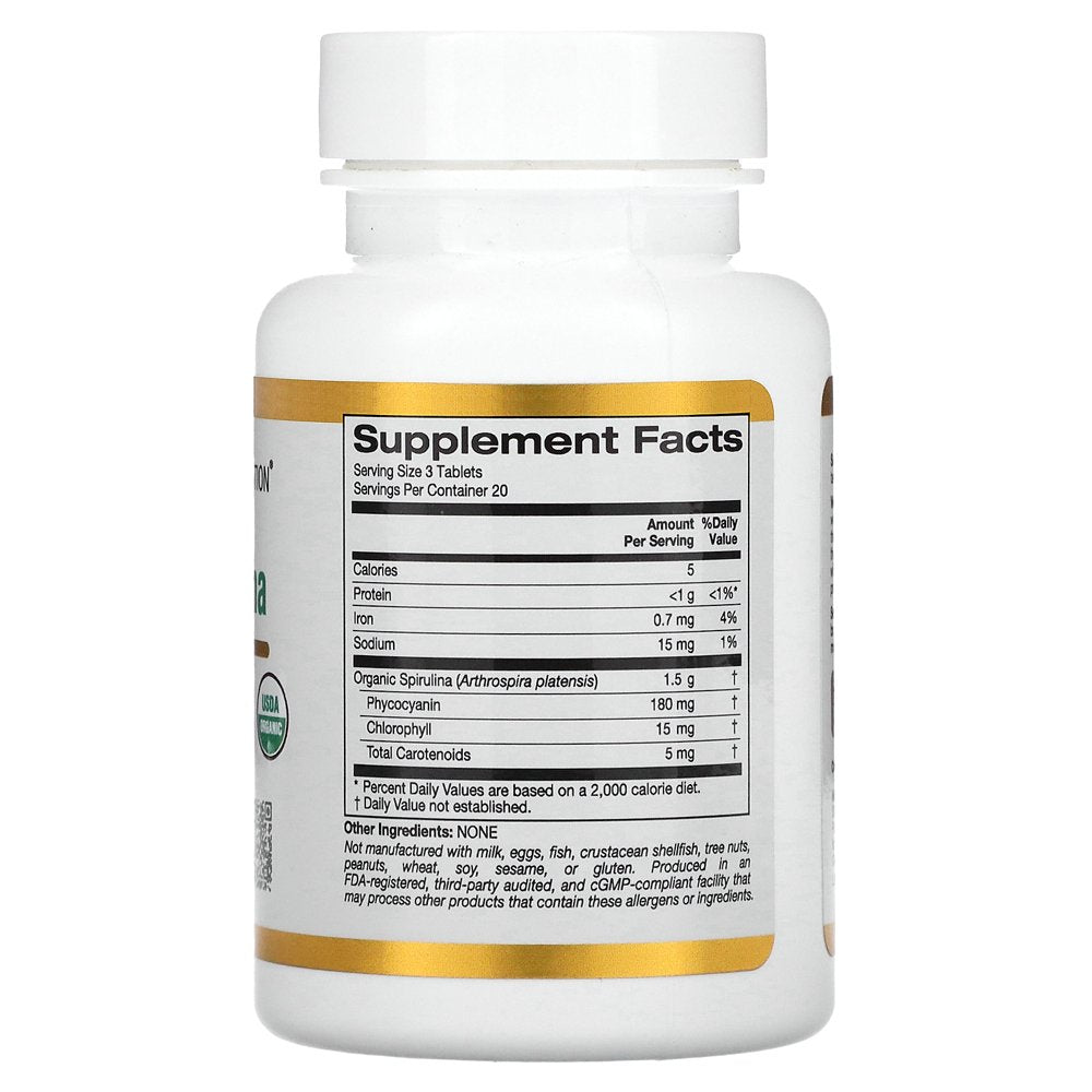 Organic Spirulina Supplement by California Gold Nutrition, Featuring a Green Superfood with Antioxidants, Vegan Friendly, Gluten Free, Non-Gmo, 500 Mg,60 Tablets
