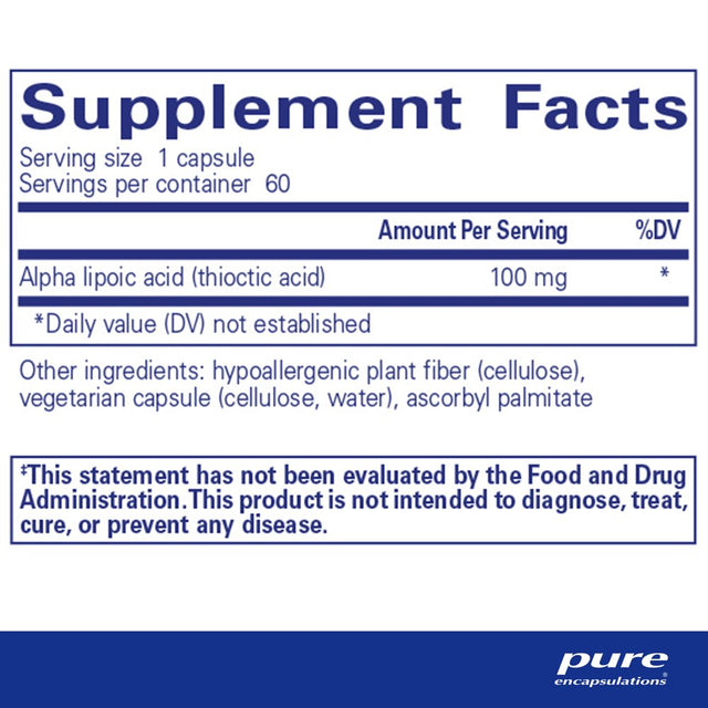 Pure Encapsulations Alpha Lipoic Acid 100 Mg | ALA Supplement for Liver Support, Antioxidants, Nerve and Cardiovascular Health, Free Radicals, and Carbohydrate Support* | 60 Capsules