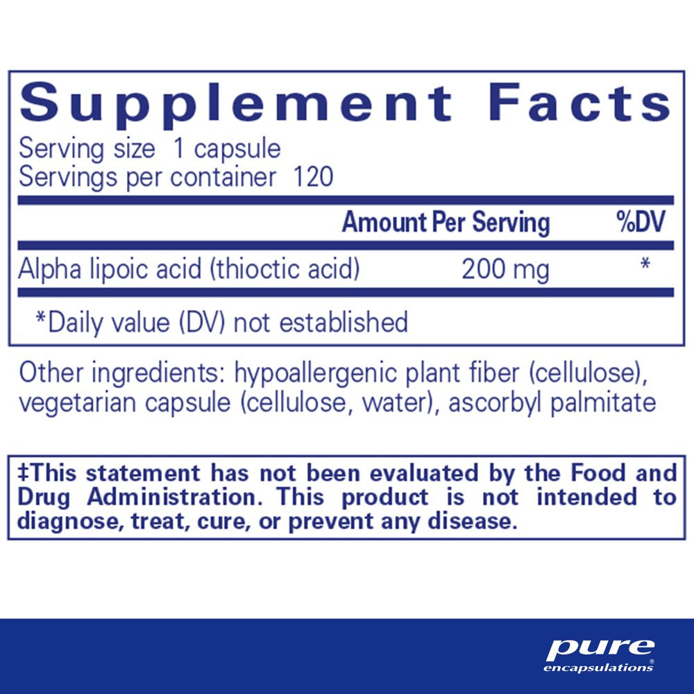Pure Encapsulations Alpha Lipoic Acid 200 Mg | ALA Supplement for Liver Support, Antioxidants, Nerve and Cardiovascular Health, Free Radicals, and Carbohydrate Support* | 120 Capsules