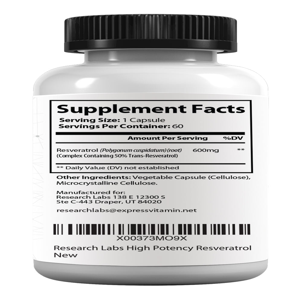• Micronized Resveratrol – Typical resveratrol is absorbed poorly. Research Labs’ proprietary manufacturing process for Micronized Resveratrol significantly enhances absorption.