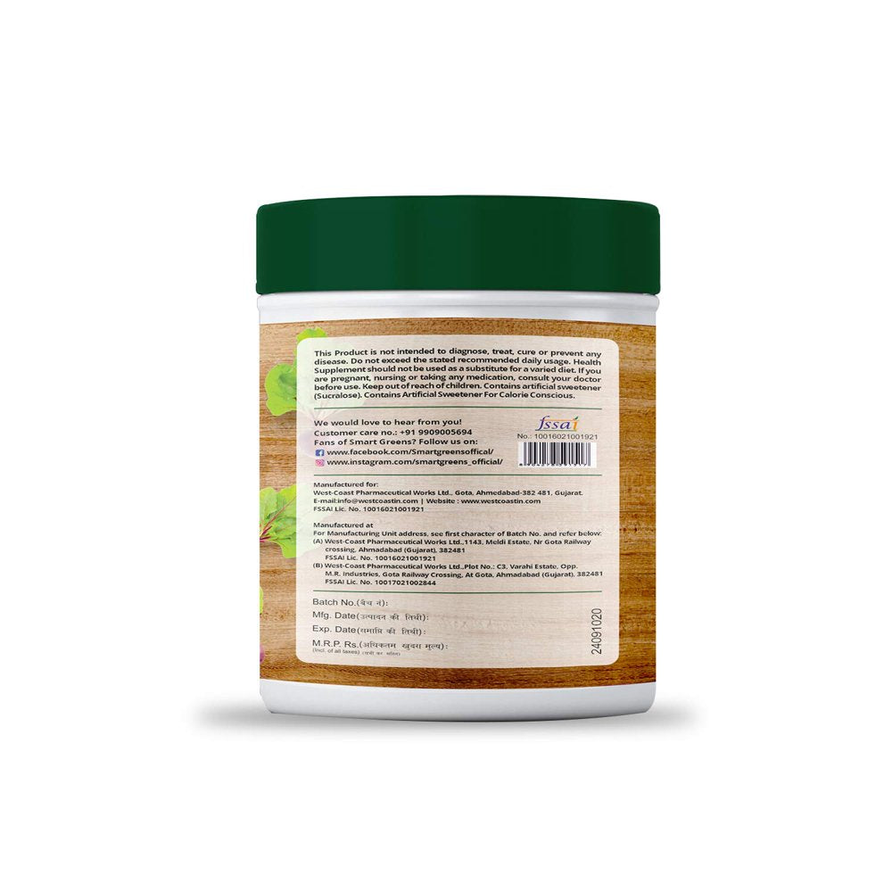 Smart Greens Plant Based Beet Root Powder, Concentrated Beet Root Crystals, Nitric Oxide Booster, Natural Circulation, Immune Support, Antioxidants, Endurance, Superfood - 300Gm Smart Greens Plant Based Beetroot Powder Is Made From Dry Beetroot Extract Powder And Thus Contains Higher Levels Of Nitrates, Comes In And Contains Valuable Vitamins And Minerals Which Leads To Better Brain And Digestive Health. Improves Brain Health Improves Digestive Health Improves Your Athletic Performance Ingredients :- Beetroot Extract Dry Powder. Suggested Use :- Take 1 Scoop (15G) Daily, Dissolved Into A Glass Of Water Or Any Beverages. For Maximum Absorption, Take On Empty Stomach, Or As Directed By Healthcare Practitioner.