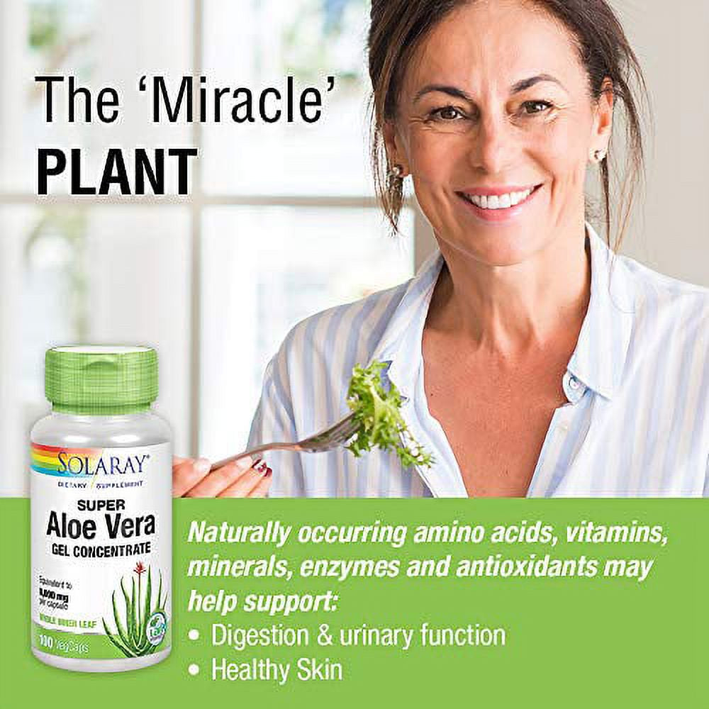 Solaray Super Aloe Vera Gel 8000Mg | Naturally Occurring Amino Acids, Vitamins, Minerals, Enzymes & Antioxidants for Healthy Digestion Support | 100 CT