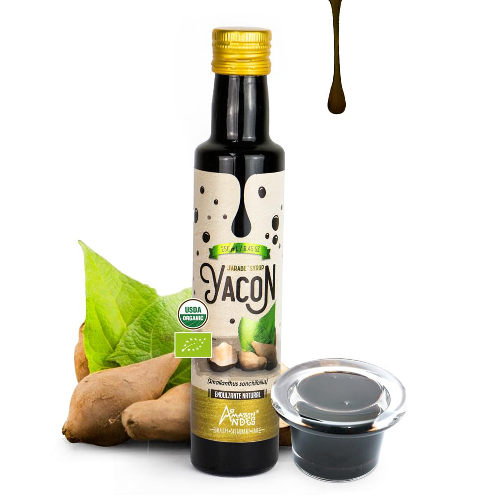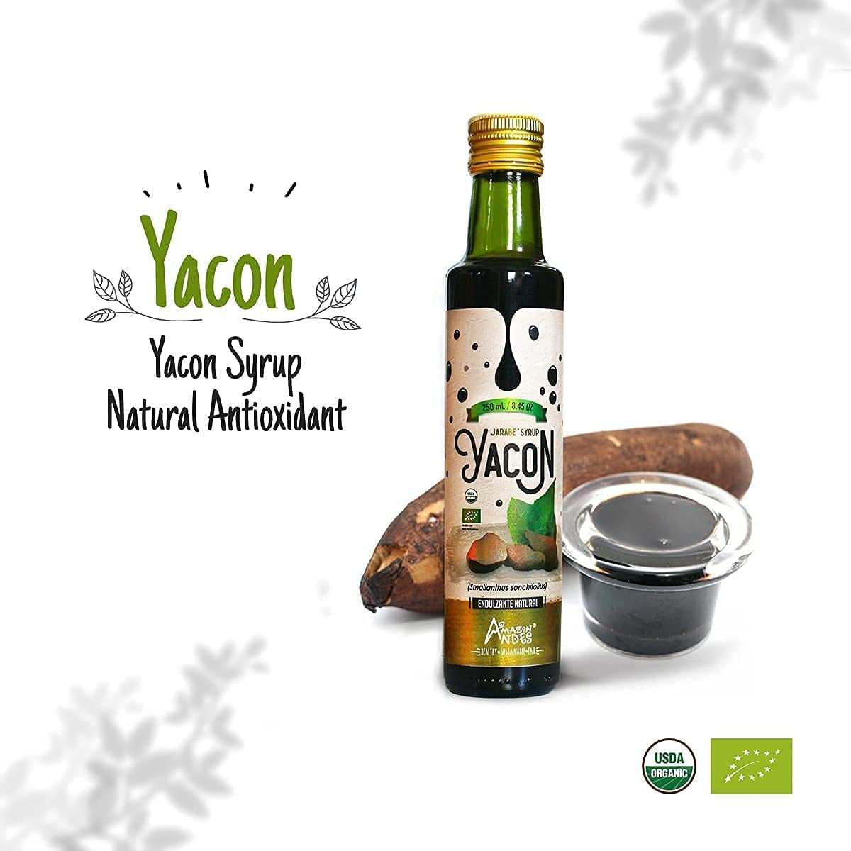 Yacon Root Syrup L USDA and EU Organic Certified and Pure Natural Sweetener L 8.45 Fl Oz. (250Ml) Prebiotic Rich in FOS with Antioxidants and Vitamins L Gluten Free and NON-GMO L Amazon Andes