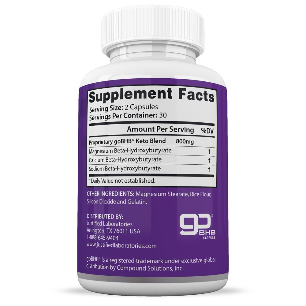Justified Laboratories Extra Burn Keto Pills includes goBHB and has a potency of 800mg.