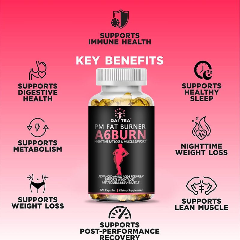 ADVANCED NIGHT TIME FAT BURNER: A6BURN Is Carefully Designed To Keep Your Body Burning Fat Throughout The Night, While Assisting In A Full-nights Deep Restful Sleep.* A Non-stimulant Natural Fat Burning Formula NON-GMO Supplement Made In The Usa Using Strict Good Manufacturing Practices. We Care About Your Health, So We Use Only The Safest, Effective & Highest Quality Ingredients. Unhappy With Your A6burn? Contact The DAITEA Nutrition Directly For A Quick Resolution. IMMUNE SUPPORT WEIGHT LOSS DIET SUPPLEMENT: The Best Pills Taken Once A Day Before Bedtime. Allowing Your Body To Maximize Fat Burning, Metabolism And Recovery As You Sleep. Clinically Proven To Promote Weight Loss, Suppress Appetite, Break Down Fat, Increase Muscle Mass, Boost Metabolism & Provide Healthy Immune Support.* #1 FAT BURNING AMINO ACIDS: Formulated For Women and Men. Our Fast Acting Weight Loss Supplements Target Women's Problem Areas Like Belly Fat So That You Lose Weight Fast. A6burn Fat Burning Pills Are Packed With Extensively Researched Fat Burning Amino Acids, L Arginine, Ornithine, Lysine, L Lysine, Glutamine, L Glutamine, Bovine Colostrum, Colostrum, OKG, L Glycine. You Can Now Burn Belly Fat Fast with A6Burn Keto Friendly Pills. SLEEP BETTER AND WAKE UP LEANER: Our Natural Bedtime Diet Pills Are Formulated For Night Time Use. It Is Designed To Promote Rest And Relaxation. Stimulating Fat Cells To Break Down The Fat In Storage, Stop Storing More Fat & Break Downs Belly Fat. Add Enclare A6burn To Enclare Detox, Enclare Forskolin, Enclare Stamina, Enclare Multi Collagen For Even Better And Faster Results. ENHANCE PERFORMANCE, IMPROVE BODY COMPOSITION AND POST-WORKOUT RECOVERY*: Helps Supports Your Body's Lean Muscle While You Sleep. Train Harder And Recover Faster. This Non-habit Forming Helps Your Body To Repair And Rebuild Muscle And Bone Tissue, Carries Out Cellular Regeneration And Restores Balance To Your Metabolism While You Sleep.