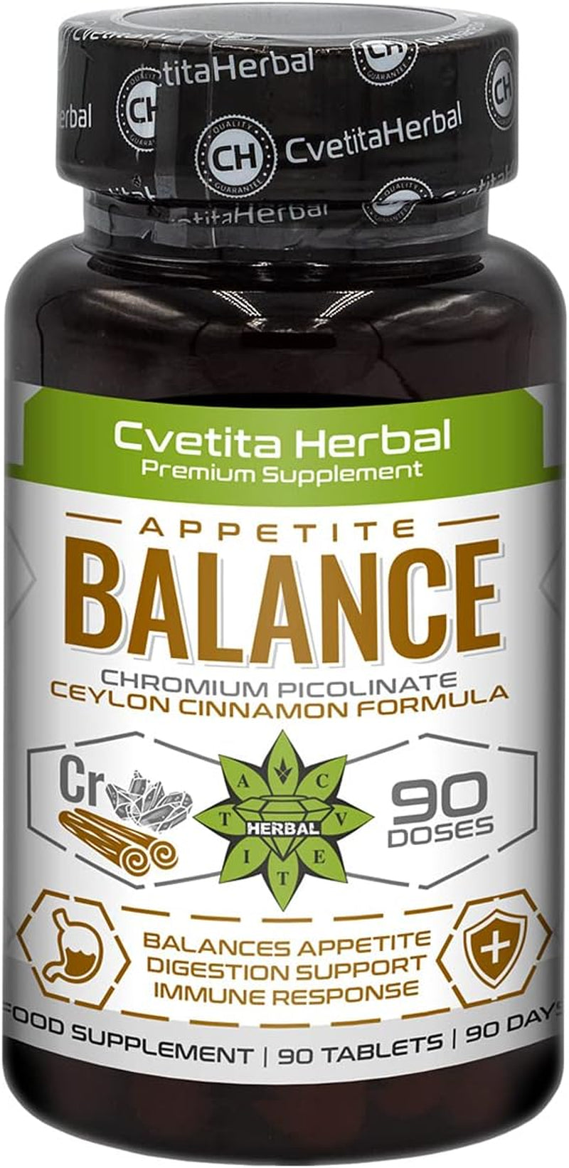 - ✔️ WHY BUY CVETITA HERBAL APPETITE BALANCE SUPPLEMENT - Our high potency and excellent absorption tablets contains 200mg Ceylon Cinnamon & 100mcg Chromium Picolinate per serving. Just one easy to swallow Appetite Balance tablet per day.