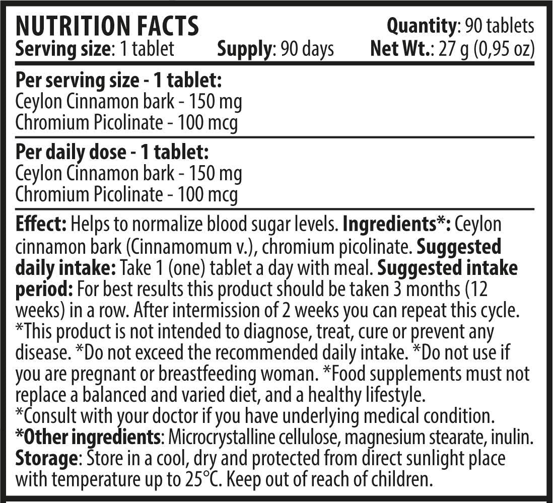 - ✔️ 90 DAY'S FULL SUPPLY - Our 90 tablet pack gives amazing value keeping you replenished with 150mg Ceylon Cinnamon & 100mcg Chromium Picolinate for 90 days.