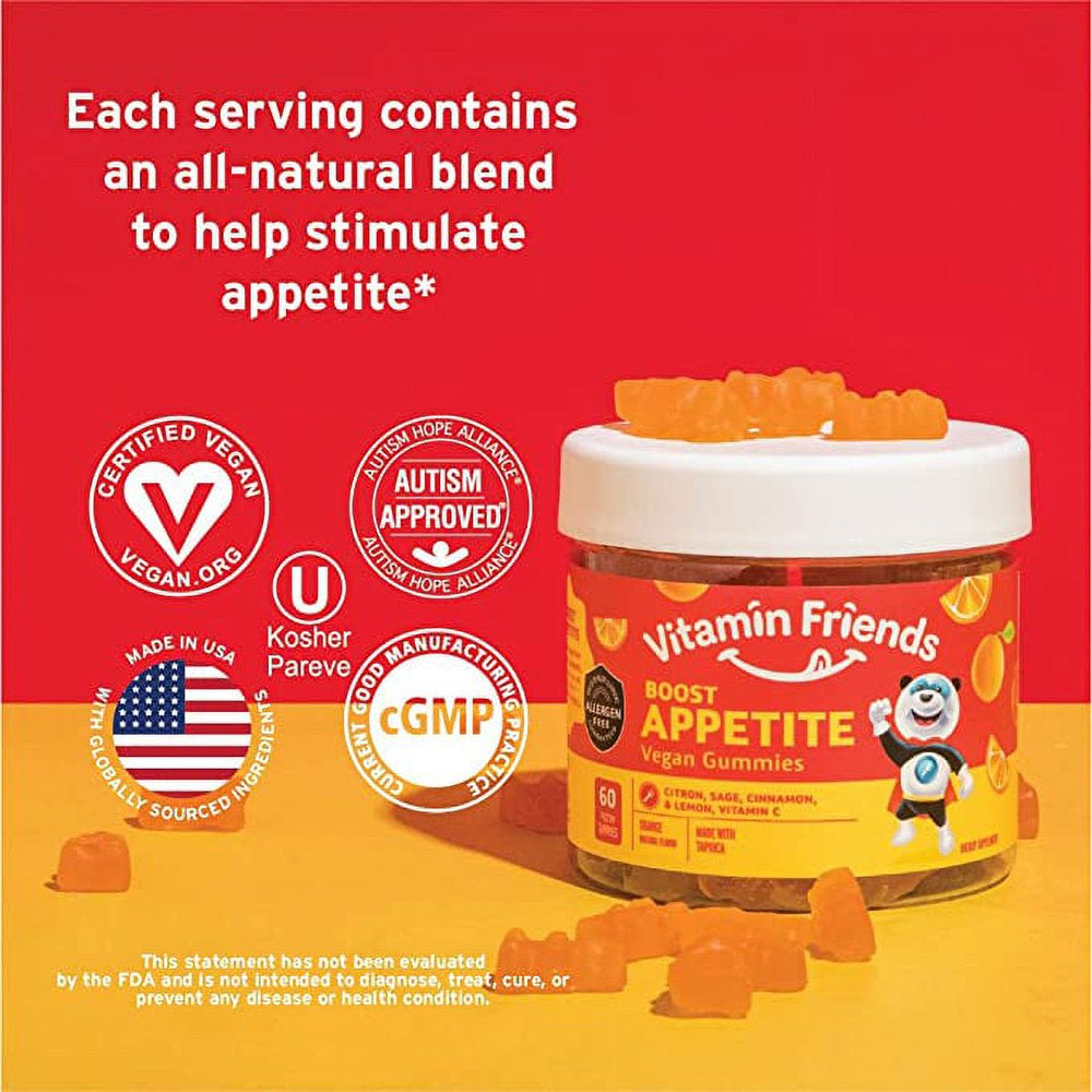 Vitamin Friends Boost Appetite Vegan Dietary Supplement Gummies 60 count bottle, Orange Flavor: