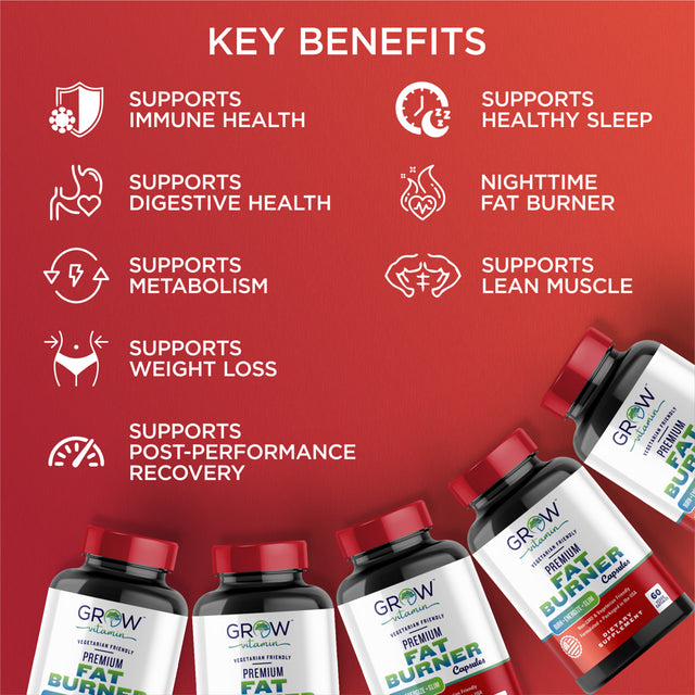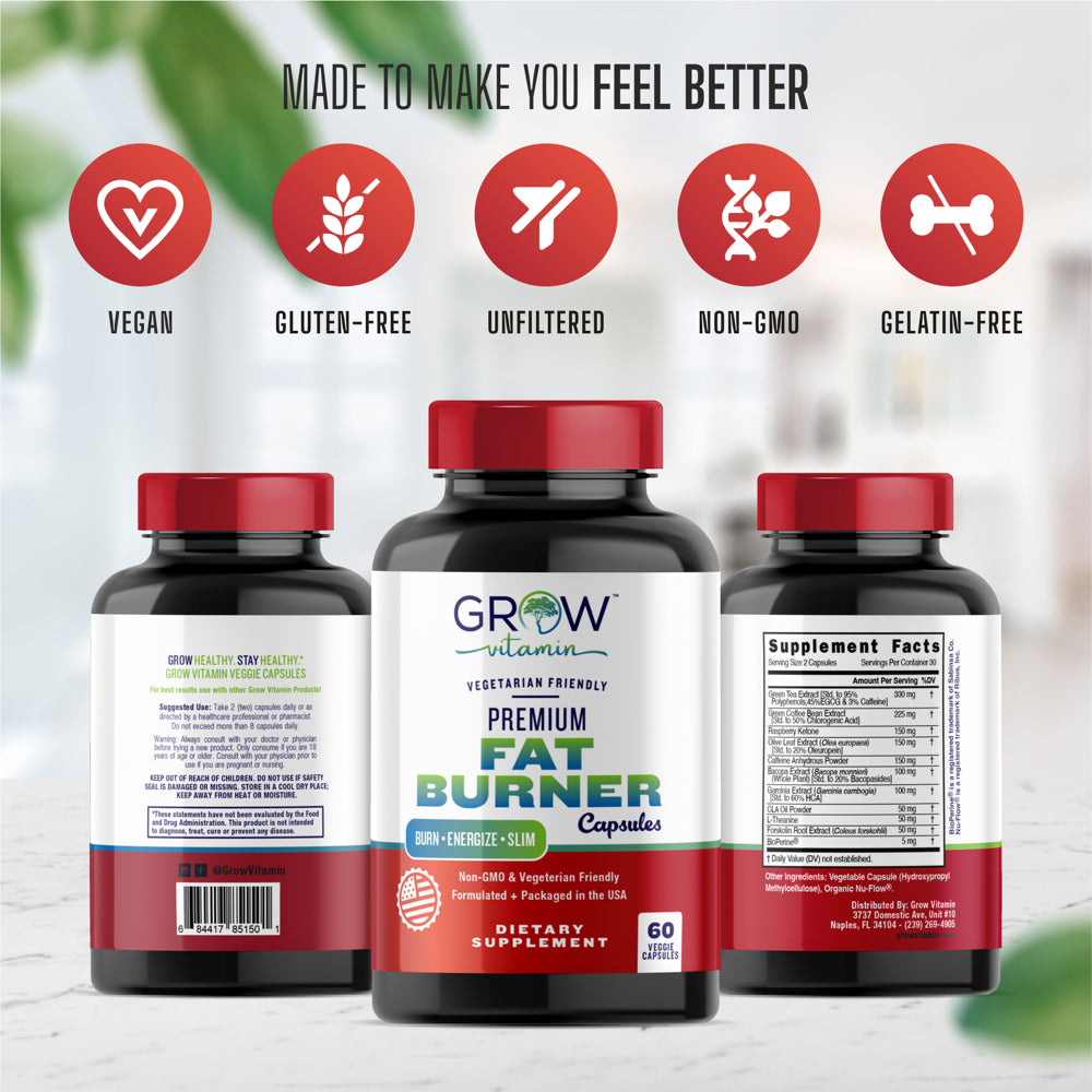 Grow Vitamin's Premium Fat Burner uses premium natural ingredients, efficacious doses, total label transparency, and contains no artificial fillers, preservatives, or food dyes.