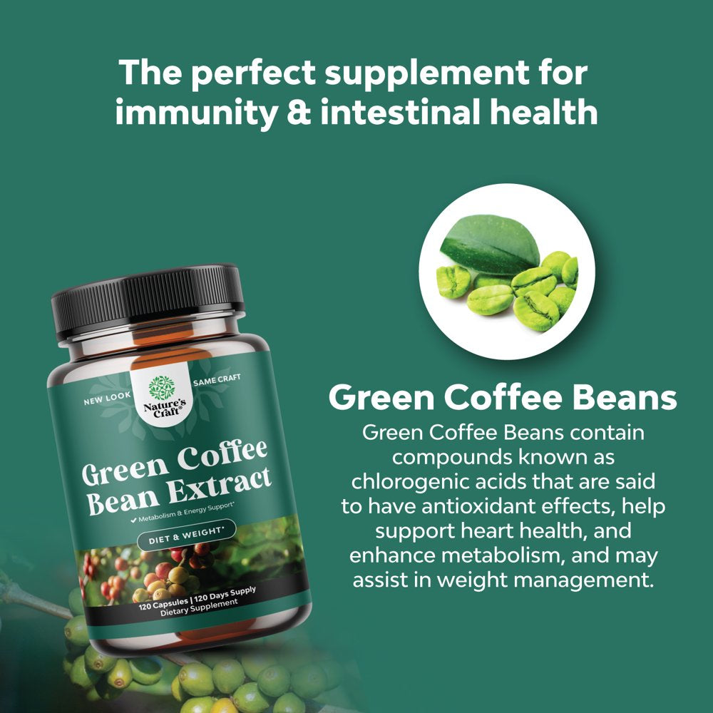 Green Coffee Bean Extract for Weight Loss - Weight Loss Pills for Women and Men - Appetite Suppressants for Weight Loss with Chlorogenic Acid - Herbal Fat Burner to Assist with Weight Loss 120 Count