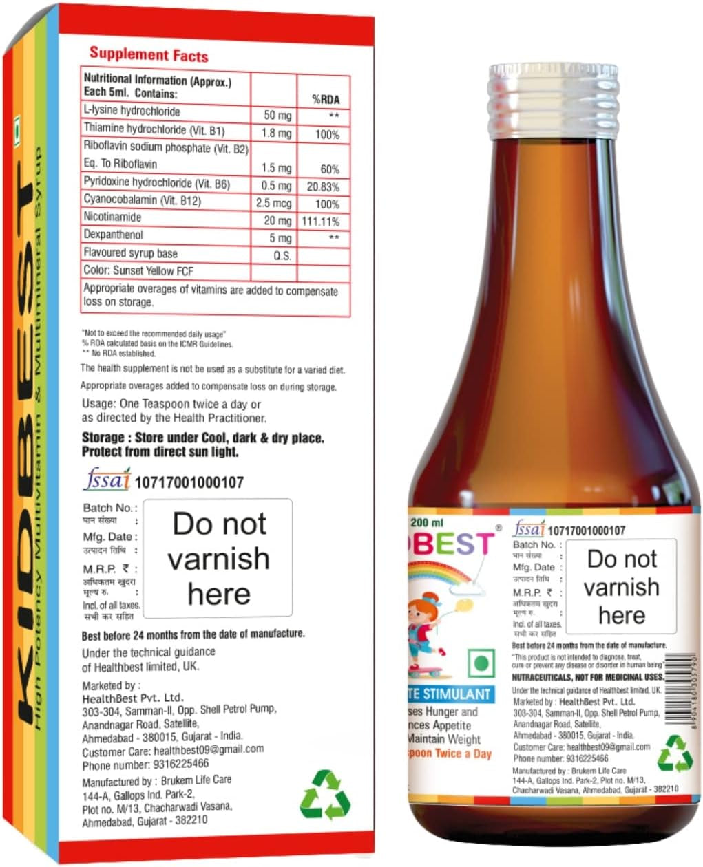 Kidbest Appetite Stimulant Syrup for 3-13 Yrs Kids | Increase Hunger | Helps Maintain Weight | Gluten Free | L-Lysine Hci,Vitamins B1,B2,B6,B12 | 200 Ml is backordered and will ship as soon as it is back in stock.