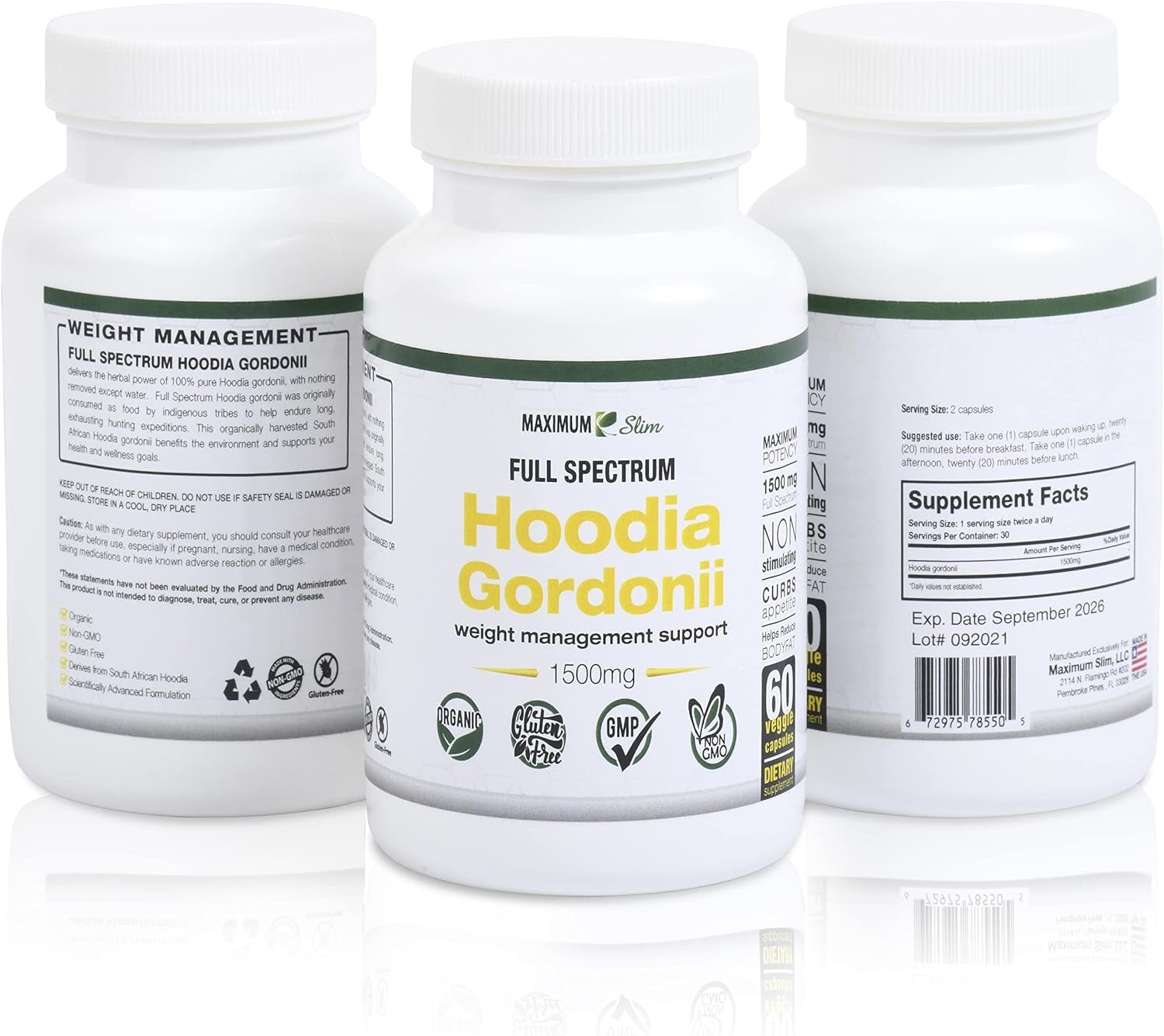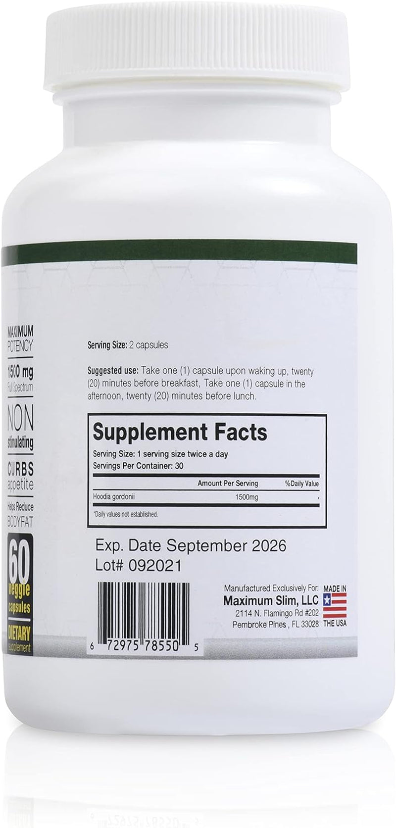 Maximum Slim Hoodia Supplements -Natural Herbal Extract Powder -Sourced from Hoodia Gordonii Leaf - Natural Vegan Appetite Suppressant. Stimulant - 60 Veggie Caps is backordered and will ship as soon as it is back in stock.