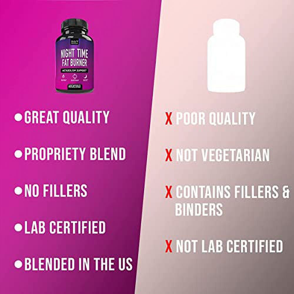 Night Time Fat Burner - Metabolism Support, Appetite Suppressant and Weight Loss Diet Pills for Men and Women - 60 Capsules.