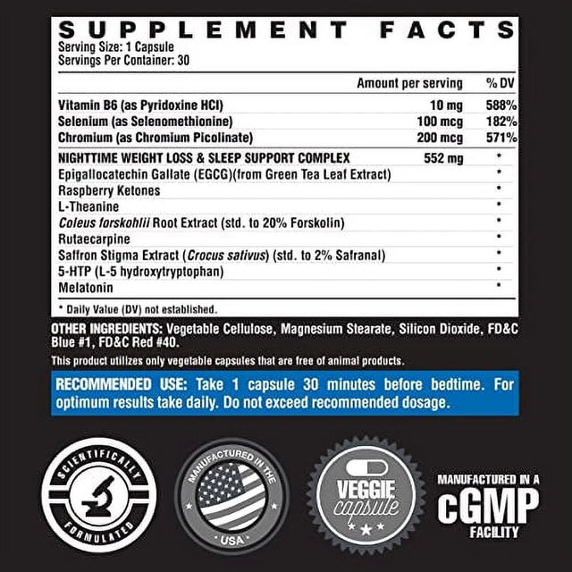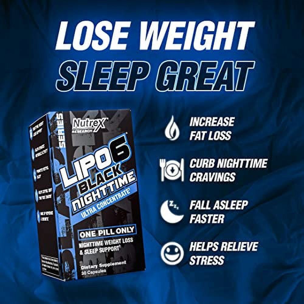 Nutrex Lipo 6 Nighttime Fat Burner | Melatonin Sleep Aid & Weight Loss Diet Pills for Men and Women | Night Time Metabolism Booster Appetite Suppressant | 30 Servings