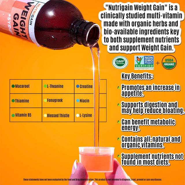 Nutrigain Weight Gain Syrup Designed for Quick and Efficient Weight Gain, Supports a Healthy Appetite, Mass and Metabolism for Both Women and Men - 8 OZ FL Bottle