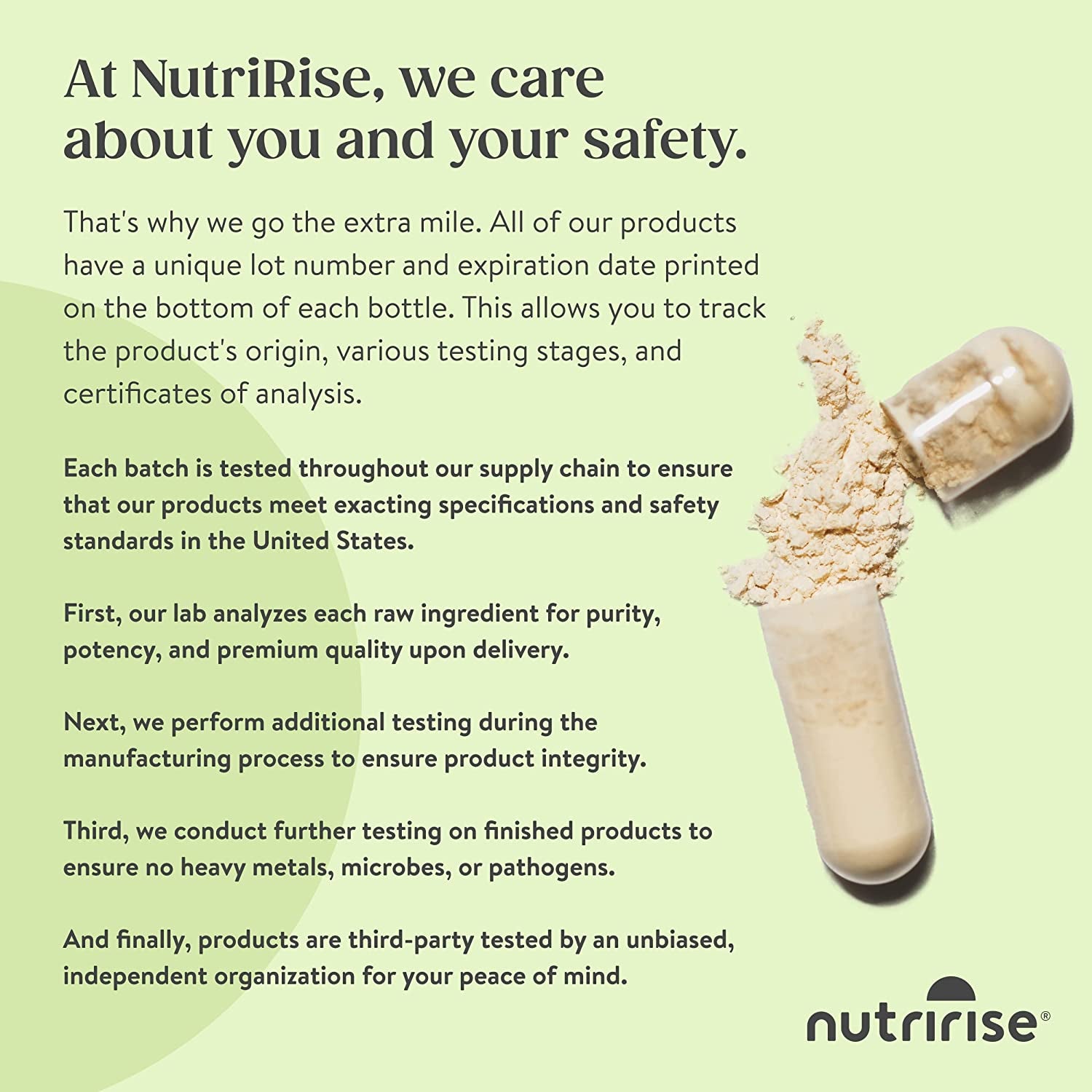 At NutriRise, customer safety is our highest priority. That's why all our supplements are manufactured in a GMP-Certified facility in the United States. All raw materials and finished products are tested in the United States.