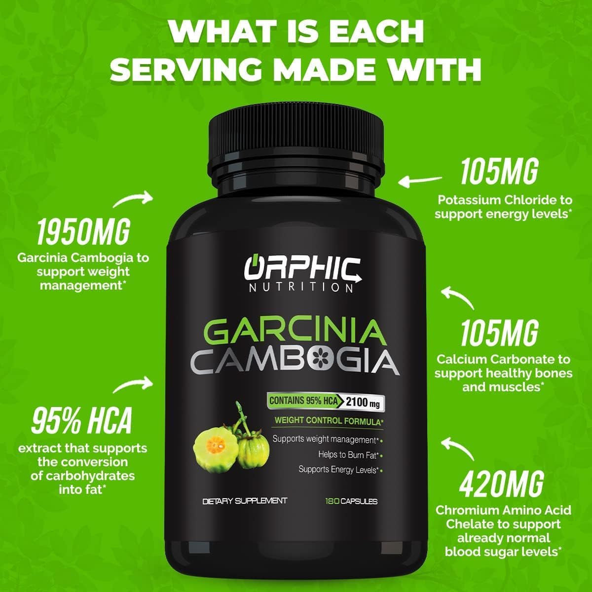 ORPHIC NUTRITION Garcinia Cambogia Extract 1 Month Supply - to Support Weight Loss Efforts* - Helps Curb Appetite*, Suitable for Vegetarians - 2100 MG - 90 Caps