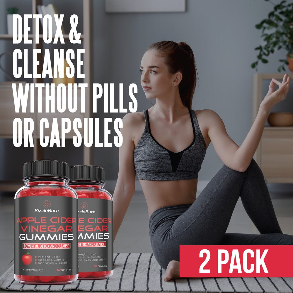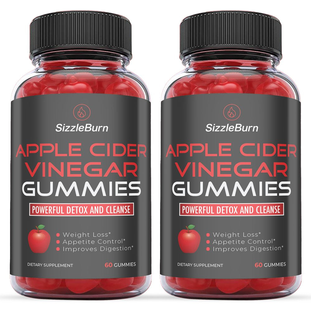 Sizzleburn Apple Cider Vinegar Gummies - Powerful Detox and Cleanse - Appetite Control & Improves Digestion – Reduce Calories, Beet Root & B12 - Gluten & GMO Free (2-Pack)