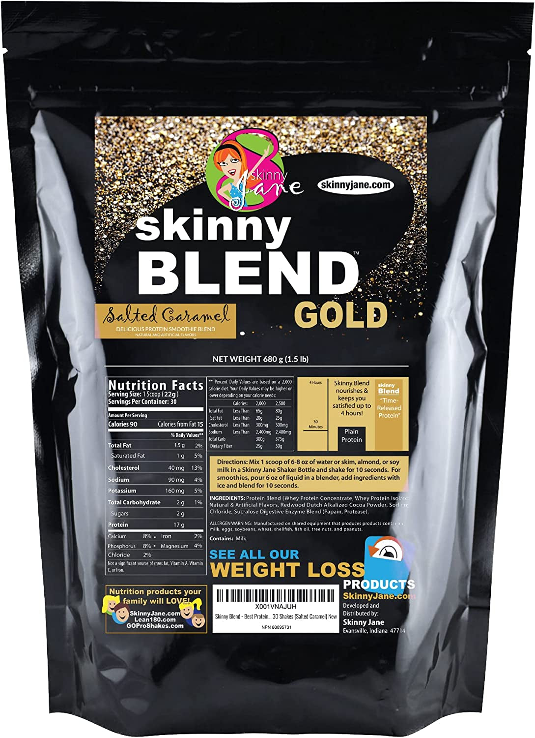 Skinny Blend - Best Tasting Protein Shake for Women - Slim Fast Weight Loss Shakes - Meal Replacement - Low Carb Breakfast - Diet Supplement - Appetite Suppressant - 30 Shakes (Salted Caramel)