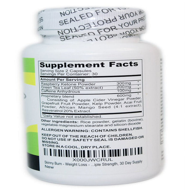 • JUST 30 DAYS TO a SLIMMER BODY & GREAT RESULTS: 60 capsules of the best diet pill Skinny Burn supports weight loss for 30 days so you can shed belly fat and excess weight while feeling great!