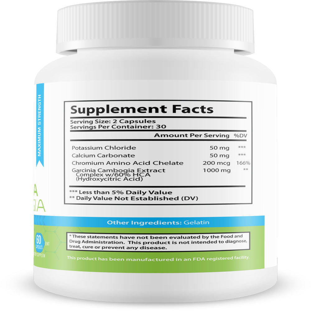 - 1,000mg of Garcinia Cambogia 60% HCA per Serving