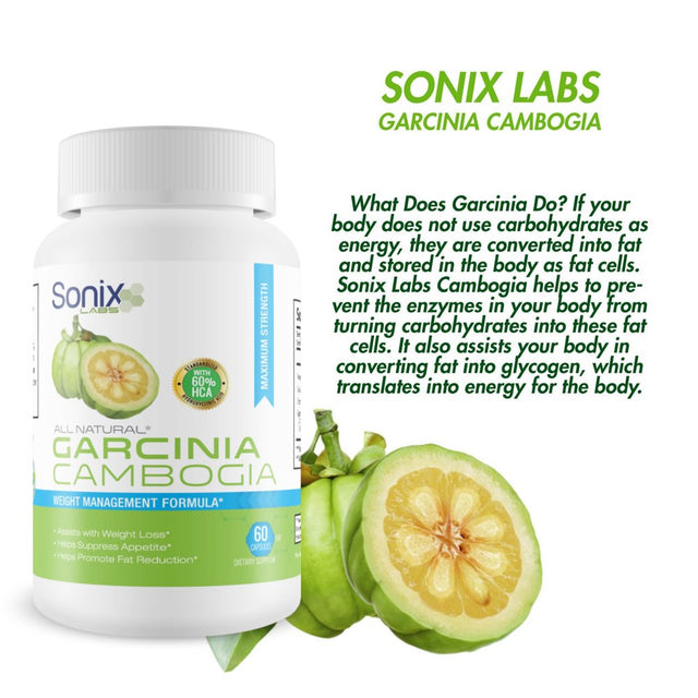 Sonix Labs - Garcinia Cambogia - 1,000Mg per Serving, 60% HCA - Extra Strength - All Natural Weight Loss Supplement - Carb Blocker & Appetite Suppressant - Diet Pills for Women & Men - 60 Capsules