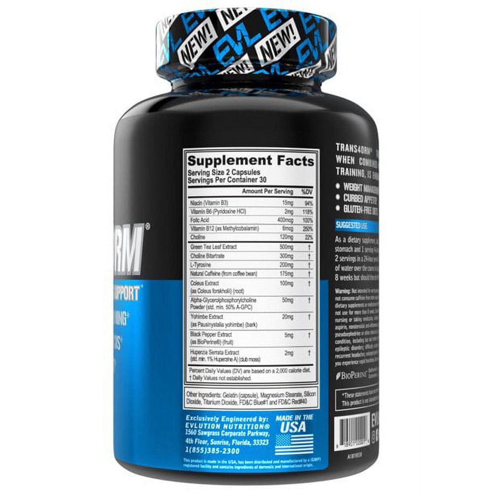 Trans4Orm Thermogenic Fat Burner Supplement - EVL Nutrition Weight Loss Pills Metabolism Booster - Appetite Suppressant for Weight Loss Diet Pills for Men & Women (30 Servings) - 30 Servings is backordered and will ship as soon as it is back in stock.