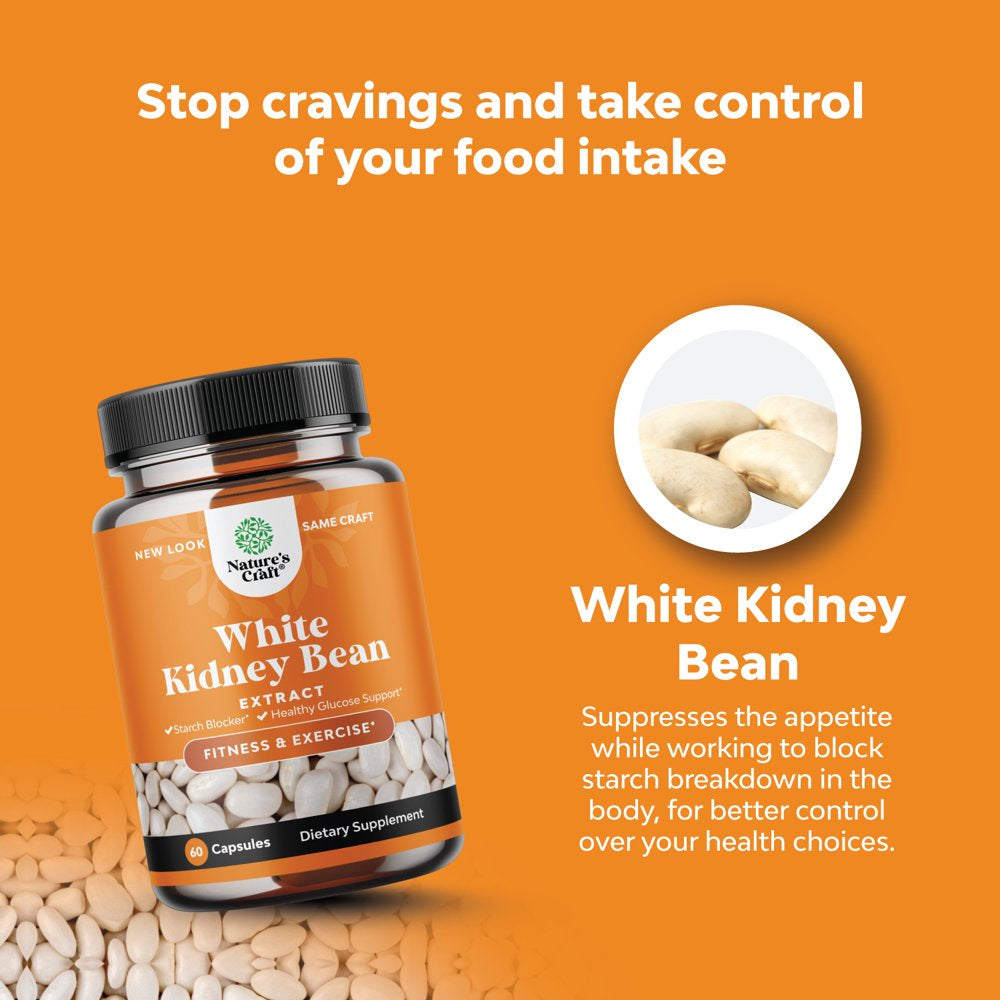 White Kidney Bean Carb Blocker Weight Loss Formula - Nature'S Craft 60Ct White Kidney Bean Extract Supplement - Lose Belly Fat, Suppress Appetite, Boost Energy