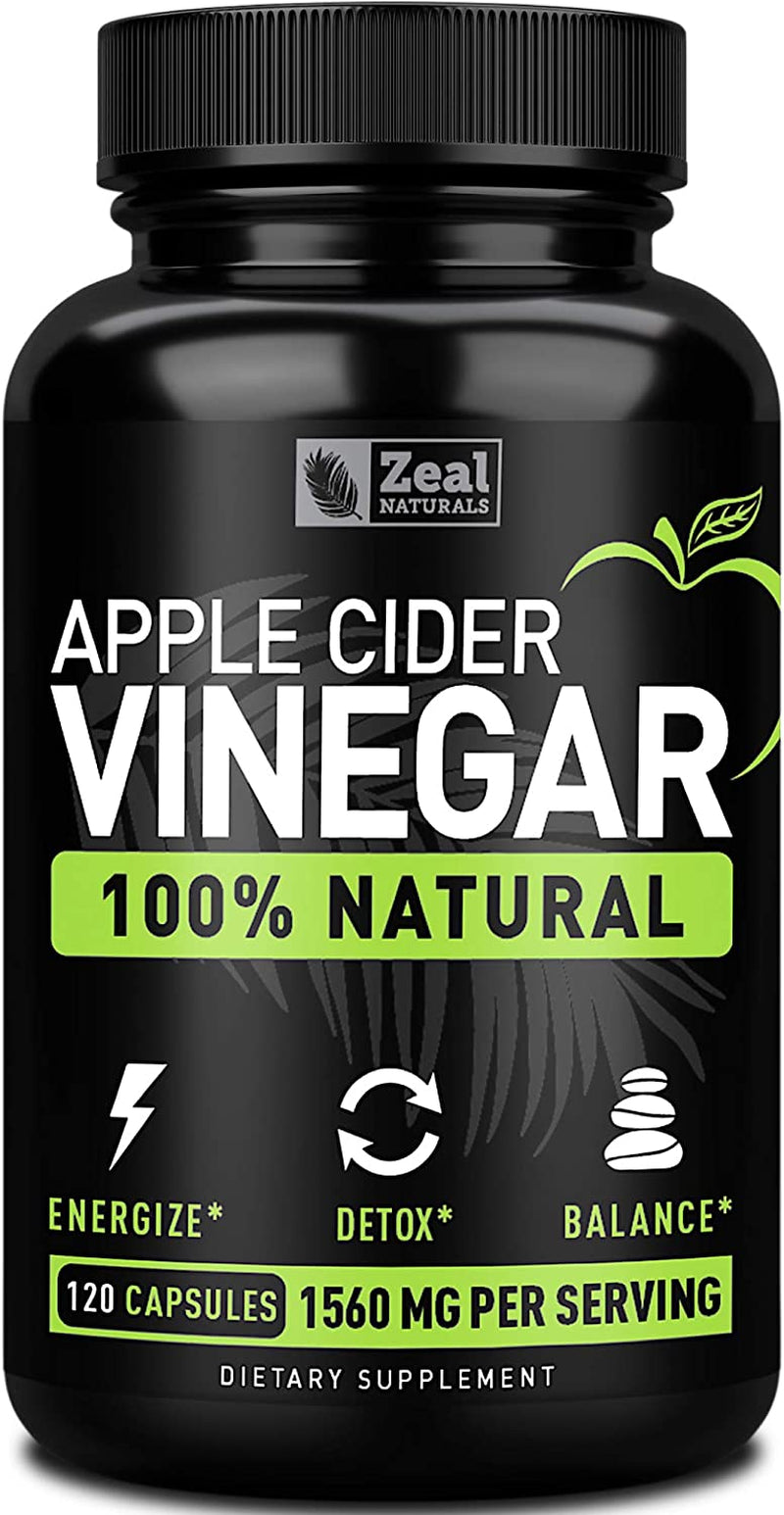 Zeal Naturals Natural Raw Apple Cider Vinegar Capsules (1560Mg|120 Capsules) Apple Cider Vinegar Pills W Cayenne Pepper, Cleanse, Appetite Suppressant & Digestive Support