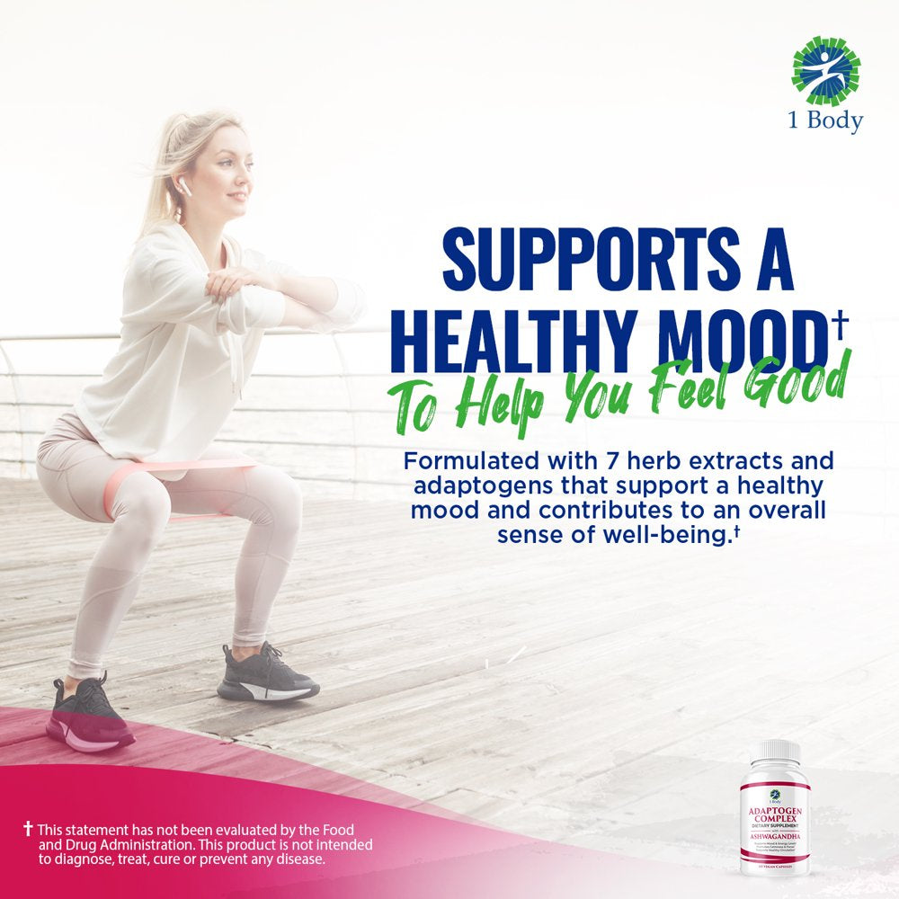 ENHANCE MOOD. By naturally balancing stress hormones, 1 Body Adaptogen Complex