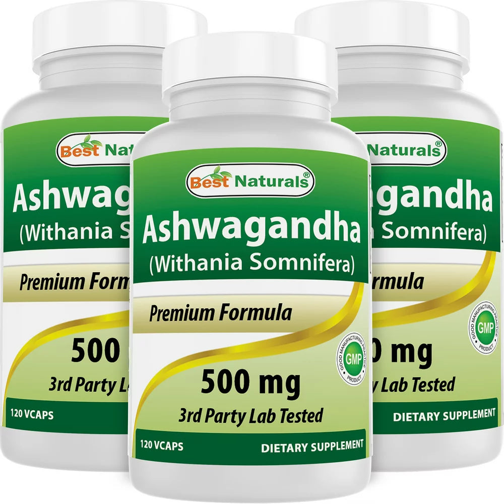 3 Pack Best Naturals Ashwagandha 500 Mg 120 Vegetarian Capsules | Relaxing Stress and Mood | (Total 360 Capsules) - 360 is backordered and will ship as soon as it is back in stock.